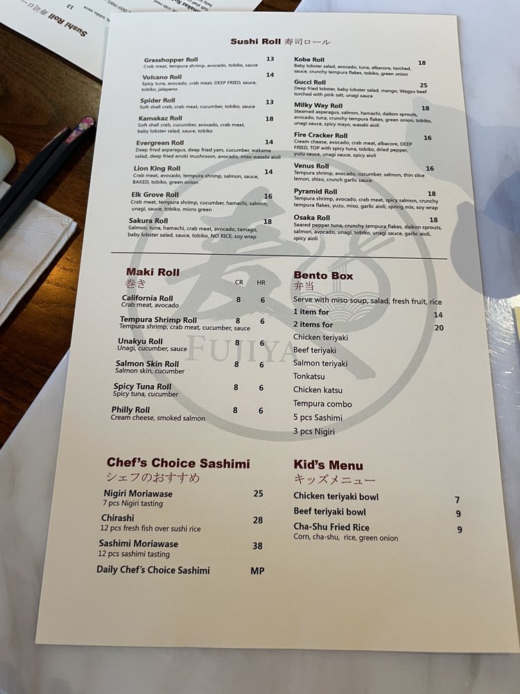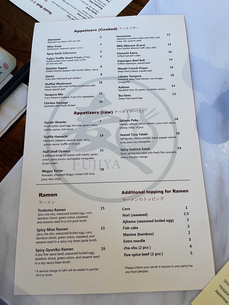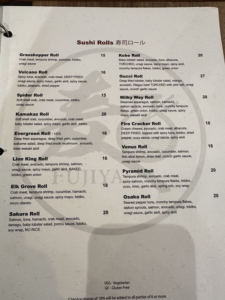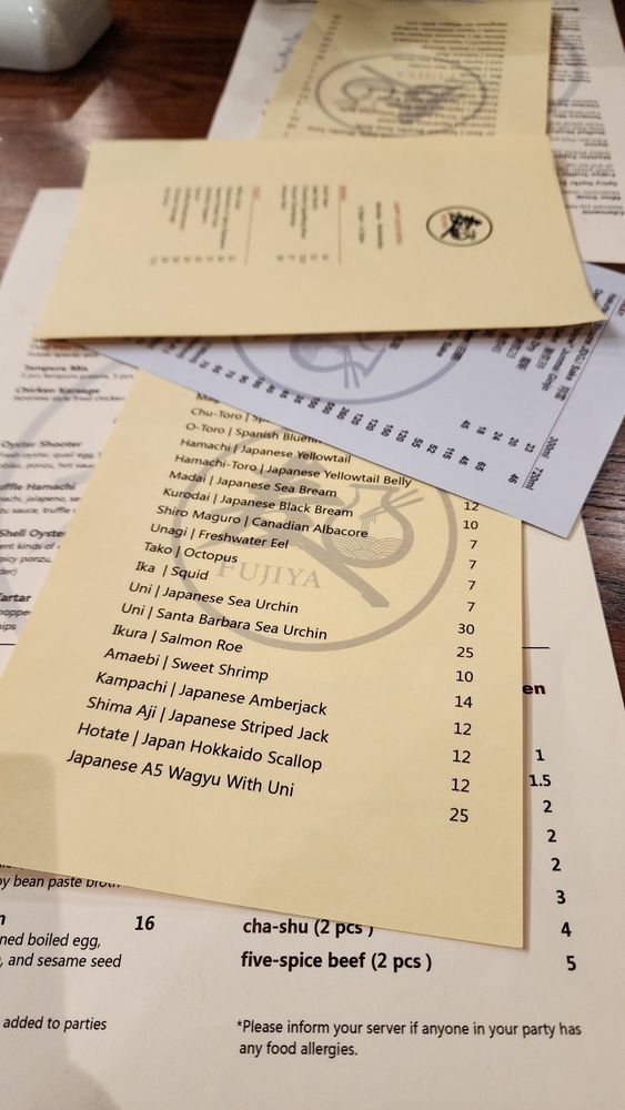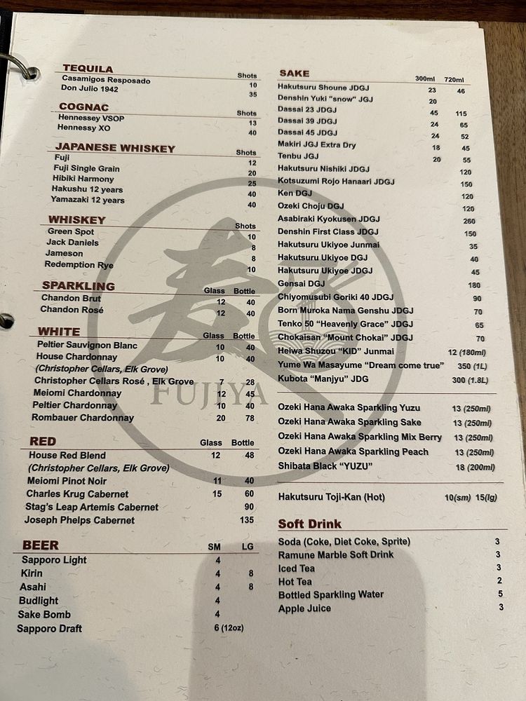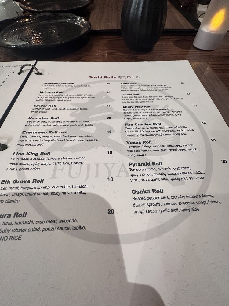 Introducing the menu at Fujiya, a Japanese sushi bar in Elk Grove, CA. The cozy and modern ambiance, along with exceptional service, make diners feel at home. Customers rave about the fresh and innovative dishes, like oyster shooters with quail egg, miso soup, and stuffed mushrooms. The chef's creations showcase every flavor profile beautifully, with options like salmon tuna poke rolls and buttery maguro nigiri. The extensive menu includes Bento boxes, Ramen, Yakitori, and Donburi, with standout items like the Gucci roll with deep-fried lobster. Top it off with well-crafted cocktails and unique tempura dishes for a truly exceptional dining experience. Fujiya is a gem for Japanese food enthusiasts, offering an unforgettable culinary journey with each visit.